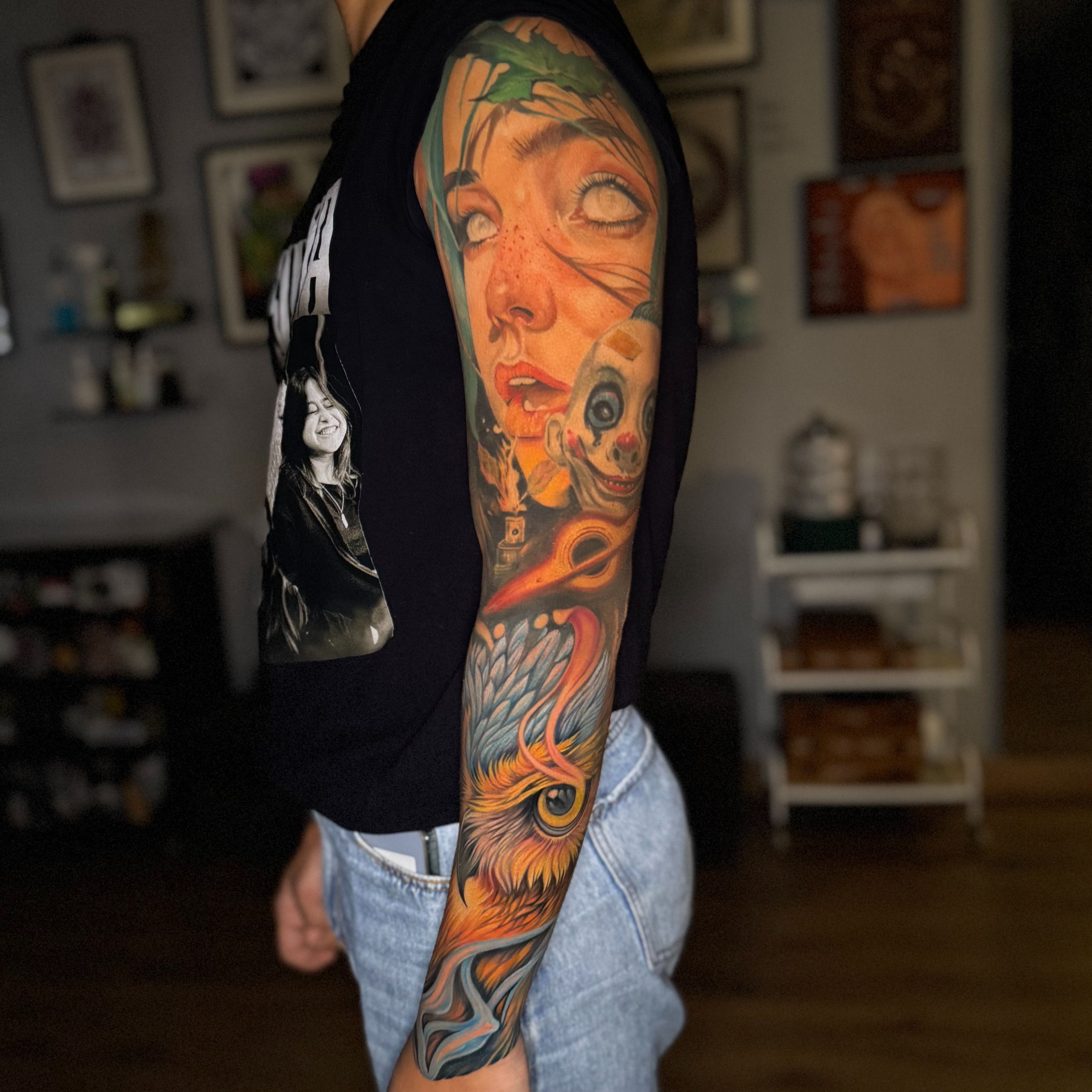 This whole sleeve is done by Vansh Chhabra at Pigmented Tattoos in Lajpat Nagar. This tattoo is done on Pramod, (the resident artist of Pigmented Tattoos). It is done in 5-6 Sessions. If you're Planning something, You can DM us or give us a call to book your Appointment. tattoo realistic tattoo sleeve tattoo full sleeve tattoo colour tattoo owl tattoo joker tattoo black hole tattoopigmentedtattoos pigmented tattoos vansh chhabra pramod mohit khurana sameer saxena tattoo studio near me tattoo studio in lajpat nagar tattoo studio in delhi ncr Tattoo studio in delhi tattoo studios in New Delhi tattoo studio in south delhi best tattoo studio in lajpat nagar best tattoo studio near me best tattoo studio in delhi ncr best tattoo studio in south delhi
